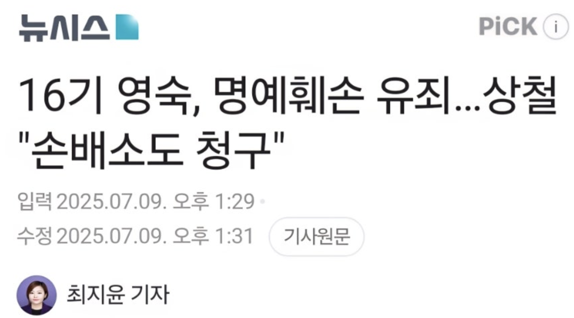 이번처럼 형사 고소→유죄 판결→민사 소송 예고까지 이어지는 경우는 드물죠.