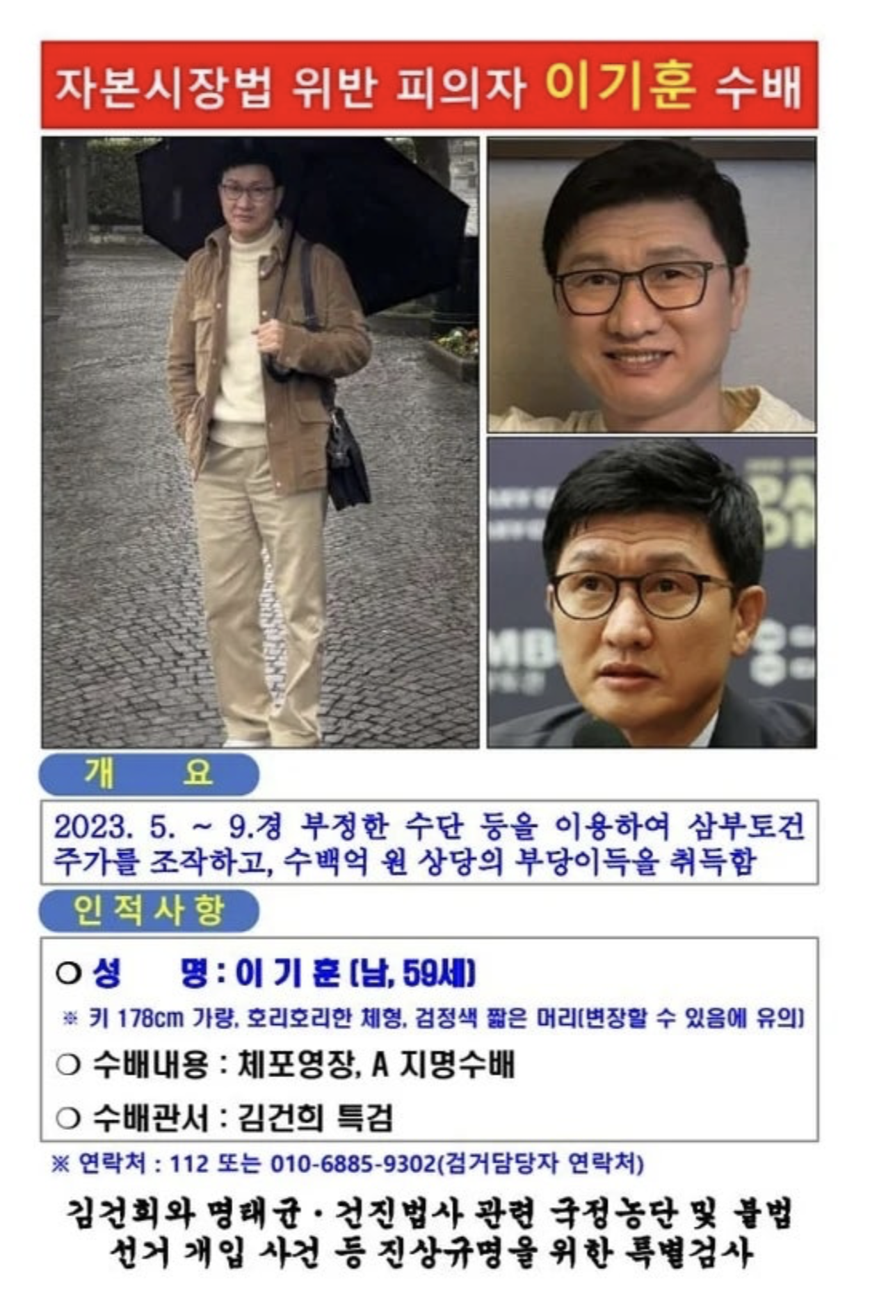 삼부토건주가조작. 이기훈 공개수배. 김건희 특검. 우크라이나 재건. 웰바이오텍. 금융사기.